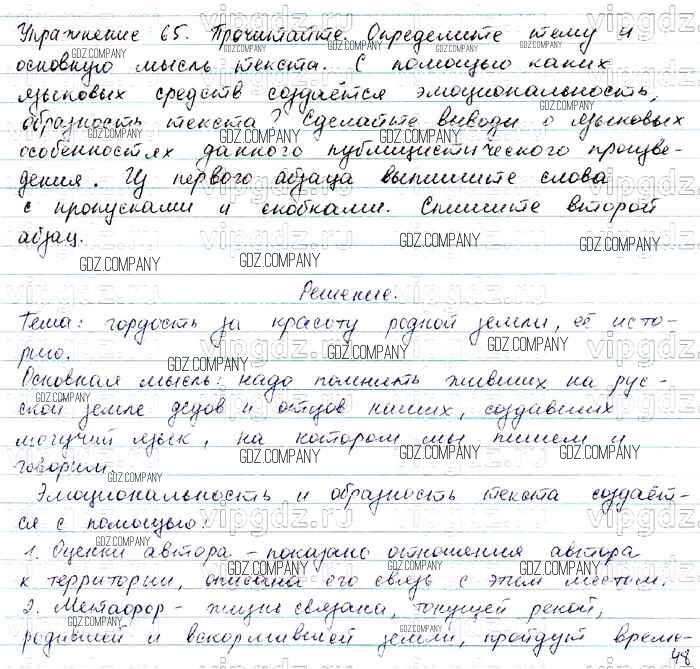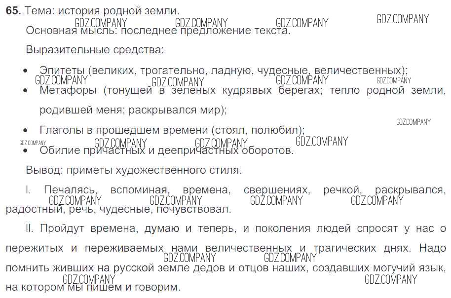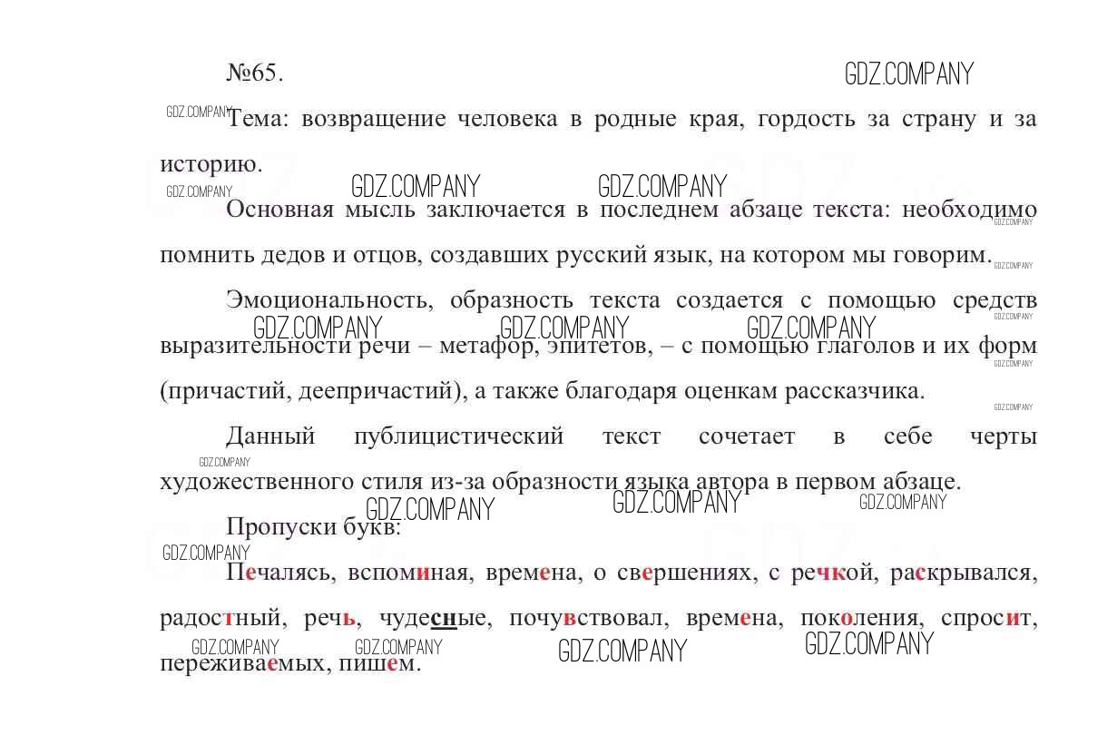 Здесь готовые ответы по Русскому языку за 7 (седьмой) класс от Баранов, Ладыженская, Тростенцова Учебник УМК (издательство: Просвещение от 2015 г.) № 65