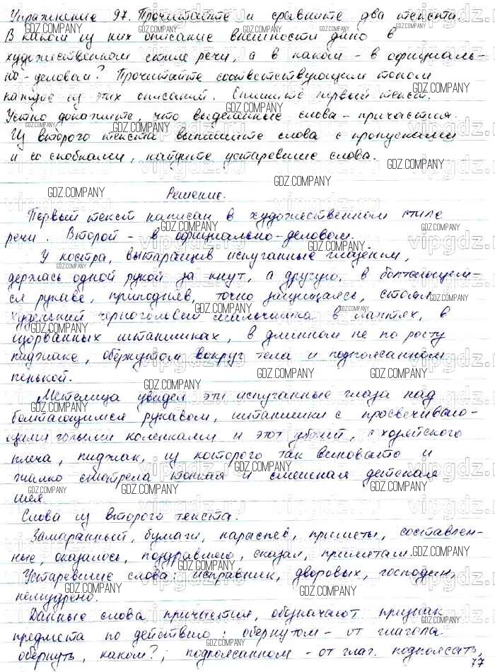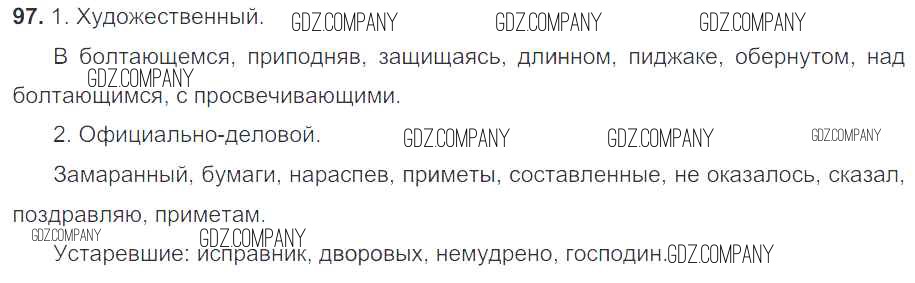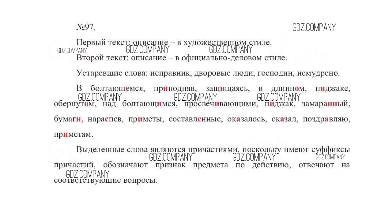 Здесь готовые ответы по Русскому языку за 7 (седьмой) класс от Баранов, Ладыженская, Тростенцова Учебник УМК (издательство: Просвещение от 2015 г.) № 97