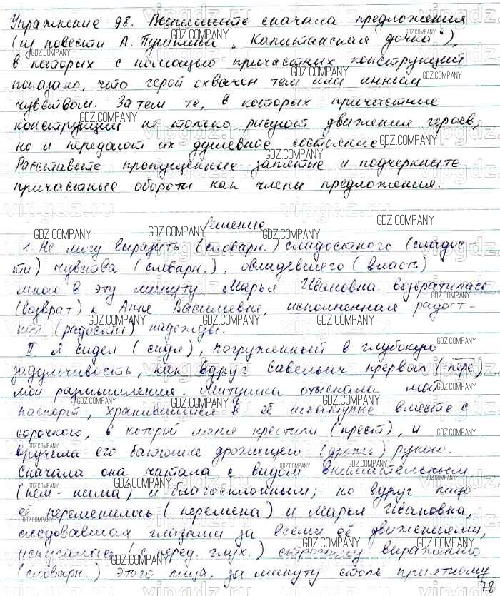 Здесь готовые ответы по Русскому языку за 7 (седьмой) класс от Баранов, Ладыженская, Тростенцова Учебник УМК (издательство: Просвещение от 2015 г.) № 98