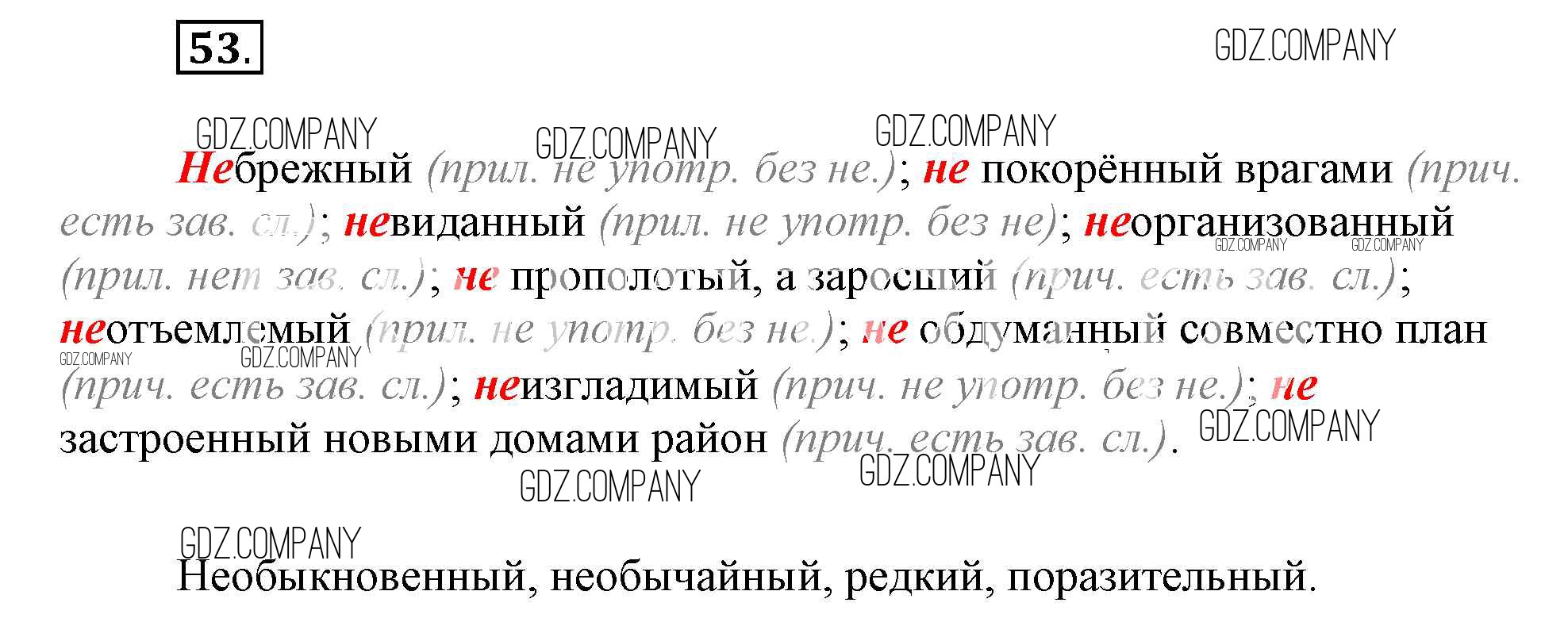 Здесь готовые ответы по Русскому языку за 7 (седьмой) класс от Ефремова, Баранова, Ладыженская, Тростенцова Рабочая тетрадь УМК (издательство: Просвещение от 2017 г.) № 53