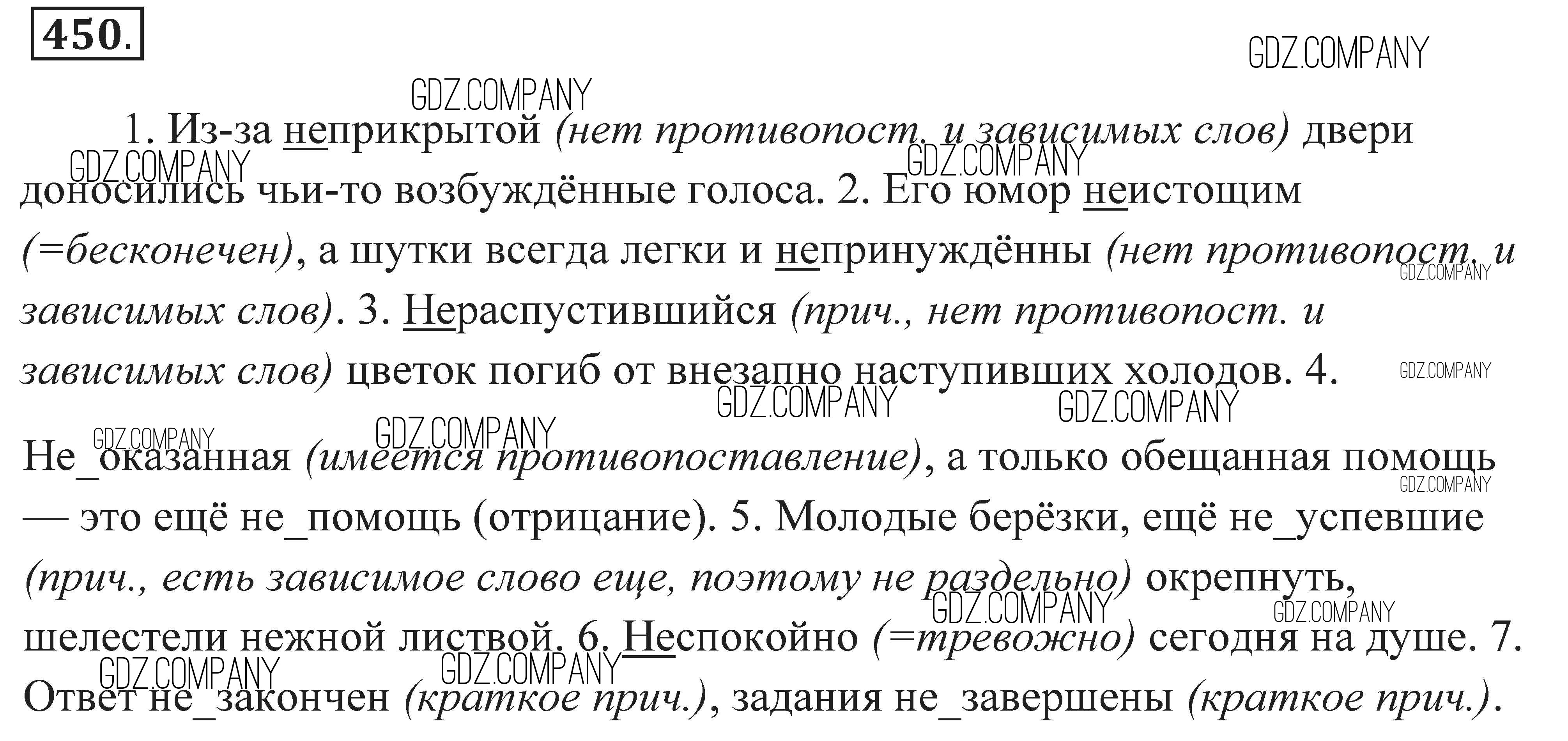 Здесь готовые ответы по Русскому языку за 7 (седьмой) класс от Пименова, Еремеева, Купалова Практика (издательство: Дрофа от 2016 г.) № 450