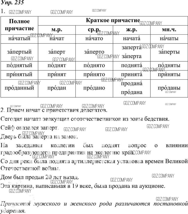Здесь готовые ответы по Русскому языку за 7 (седьмой) класс от Разумовская, Львова, Капинос, Львов, Сергеева, Соловейчик Учебник УМК (издательство: Дрофа от 2014 г.) № 235