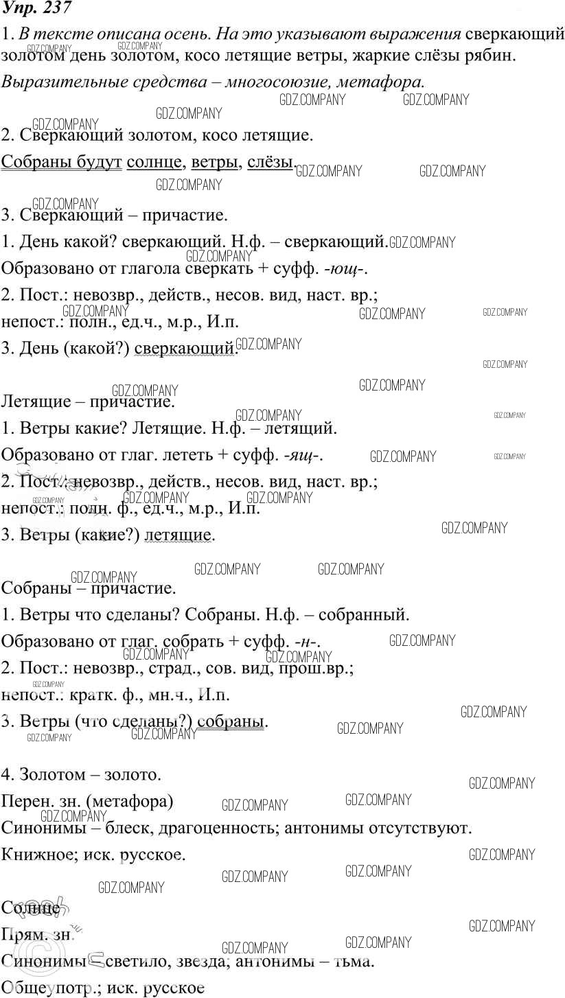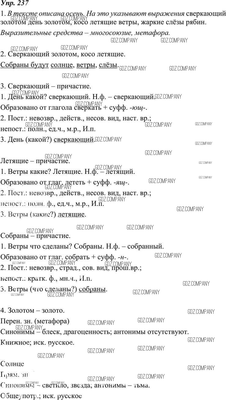 Здесь готовые ответы по Русскому языку за 7 (седьмой) класс от Разумовская, Львова, Капинос, Львов, Сергеева, Соловейчик Учебник УМК (издательство: Дрофа от 2014 г.) № 237