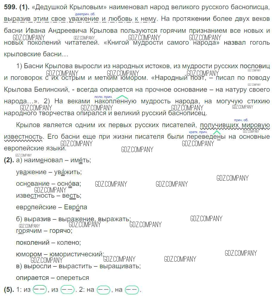 Здесь готовые ответы по Русскому языку за 7 (седьмой) класс от Разумовская, Львова, Капинос, Львов, Сергеева, Соловейчик Учебник УМК (издательство: Дрофа от 2014 г.) № 599