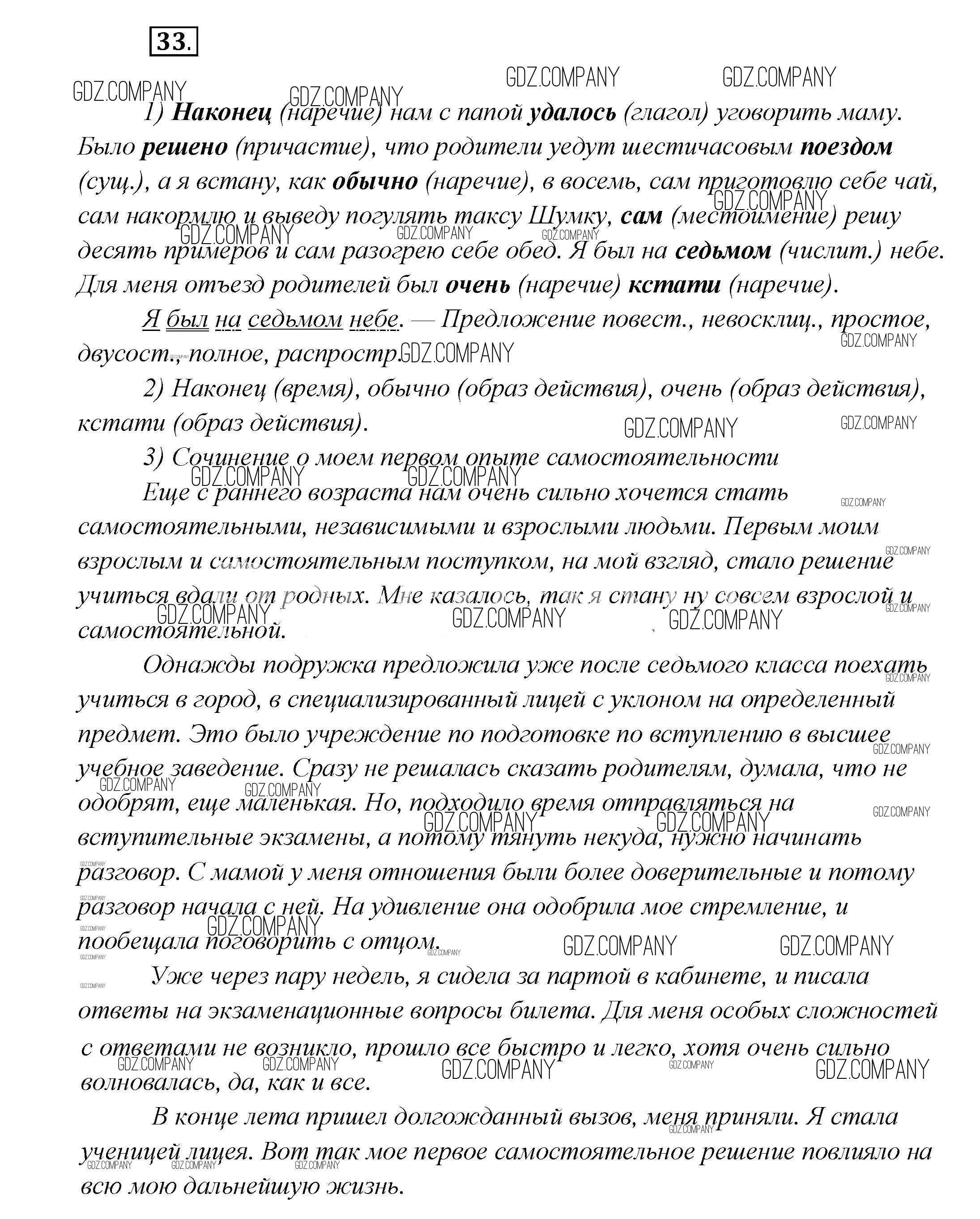 Здесь готовые ответы по Русскому языку за 7 (седьмой) класс от Шмелёв, Флоренская, Савчук, Шмелёва Учебник Алгоритм успеха (издательство: Вентана-граф от 2016 г.) № 33
