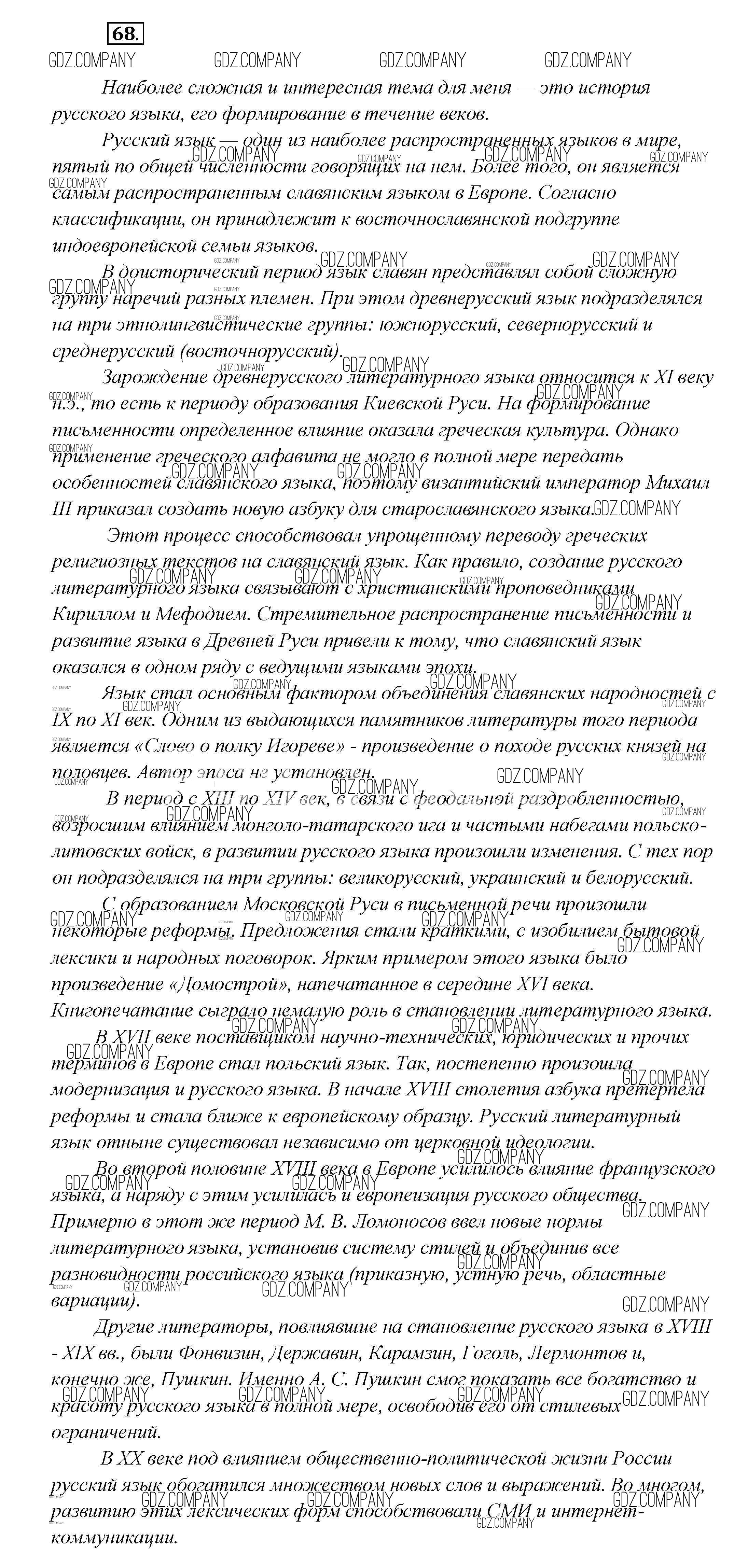 Здесь готовые ответы по Русскому языку за 7 (седьмой) класс от Шмелёв, Флоренская, Савчук, Шмелёва Учебник Алгоритм успеха (издательство: Вентана-граф от 2016 г.) № 68