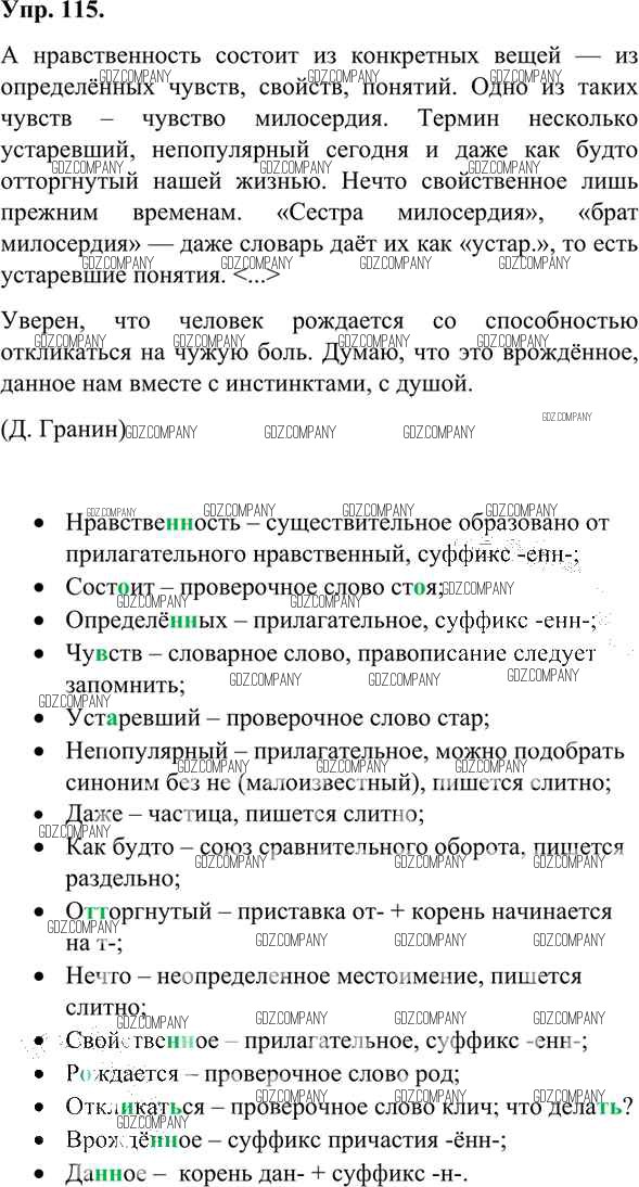 Здесь готовые ответы по Русскому языку за 7 (седьмой) класс от Александрова, Загоровская, Богданов Учебник (издательство: Просвещение от 2020 г.) № 115