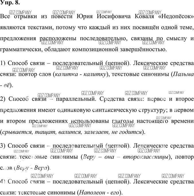 Здесь готовые ответы по Русскому языку за 7 (седьмой) класс от Быстрова, Кибирева, Гостева, Воителева Учебник Инновационная школа (издательство: Русское слово от 2019 г.) № 8