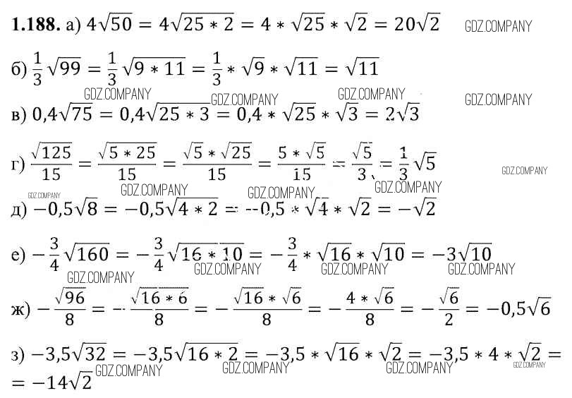 Здесь готовые ответы по Алгебре за 8 (восьмой) класс от Арефьева, Пирютко Учебник (издательство: Народная асвета от 2018 г.) № 1.188