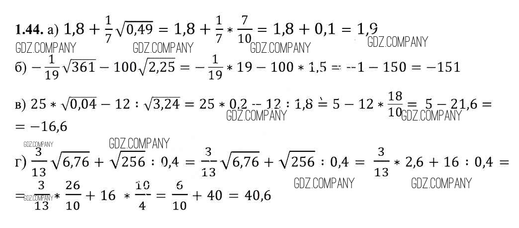 Здесь готовые ответы по Алгебре за 8 (восьмой) класс от Арефьева, Пирютко Учебник (издательство: Народная асвета от 2018 г.) № 1.44