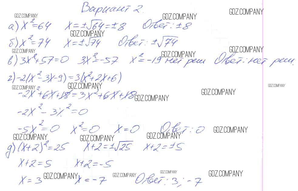 Здесь готовые ответы по Алгебре за 8 (восьмой) класс от Евстафьева, Карп Дидактические материалы (издательство: Просвещение от 2017 г.) № Вариант 2
