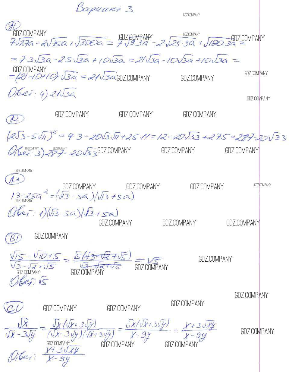 Здесь готовые ответы по Алгебре за 8 (восьмой) класс от Глазков, Гаиашвили Самостоятельные и контрольные работы УМК (издательство: Экзамен от 2012 г.) № 3