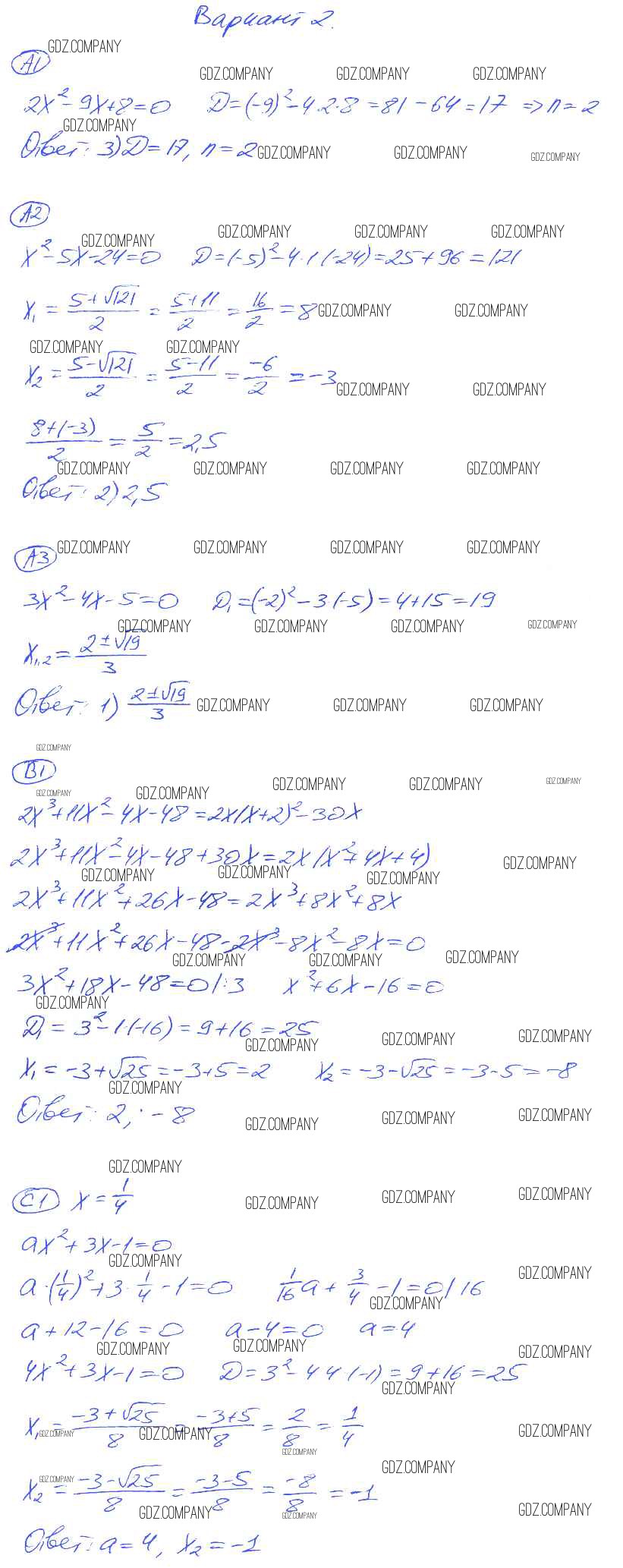 Здесь готовые ответы по Алгебре за 8 (восьмой) класс от Глазков, Гаиашвили Самостоятельные и контрольные работы УМК (издательство: Экзамен от 2012 г.) № 2