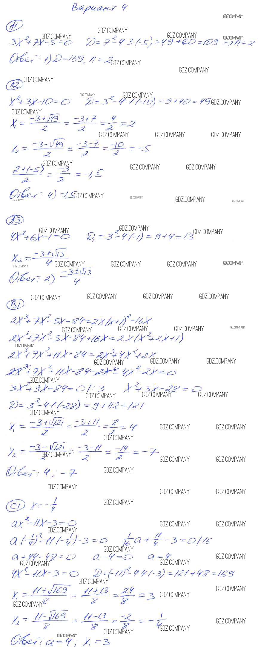 Здесь готовые ответы по Алгебре за 8 (восьмой) класс от Глазков, Гаиашвили Самостоятельные и контрольные работы УМК (издательство: Экзамен от 2012 г.) № 4