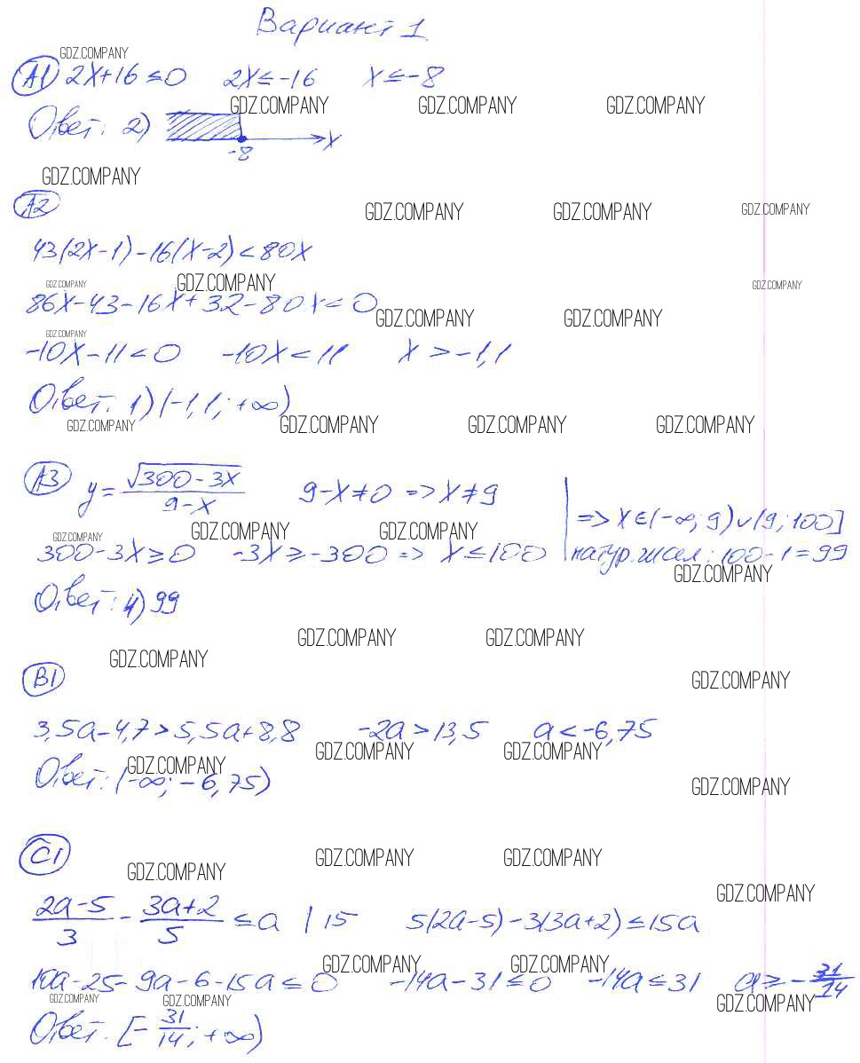 Здесь готовые ответы по Алгебре за 8 (восьмой) класс от Глазков, Гаиашвили Самостоятельные и контрольные работы УМК (издательство: Экзамен от 2012 г.) № 1
