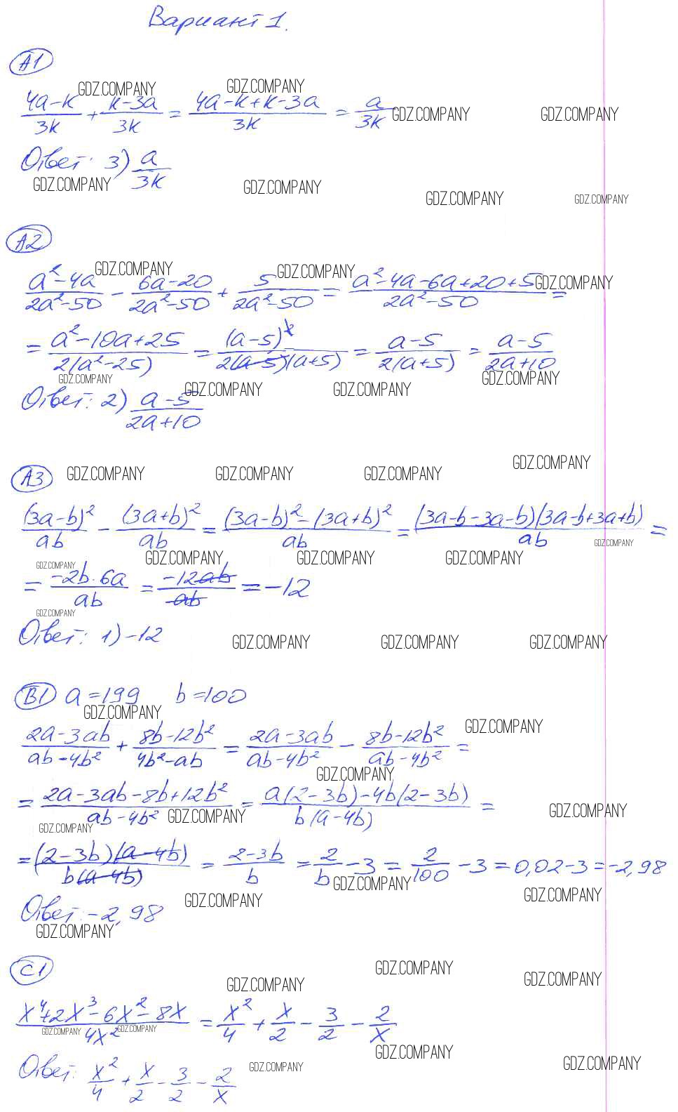 Здесь готовые ответы по Алгебре за 8 (восьмой) класс от Глазков, Гаиашвили Самостоятельные и контрольные работы УМК (издательство: Экзамен от 2012 г.) № 1