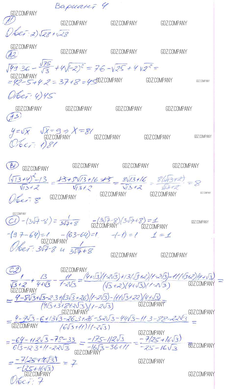 Здесь готовые ответы по Алгебре за 8 (восьмой) класс от Глазков, Гаиашвили Самостоятельные и контрольные работы УМК (издательство: Экзамен от 2012 г.) № 4
