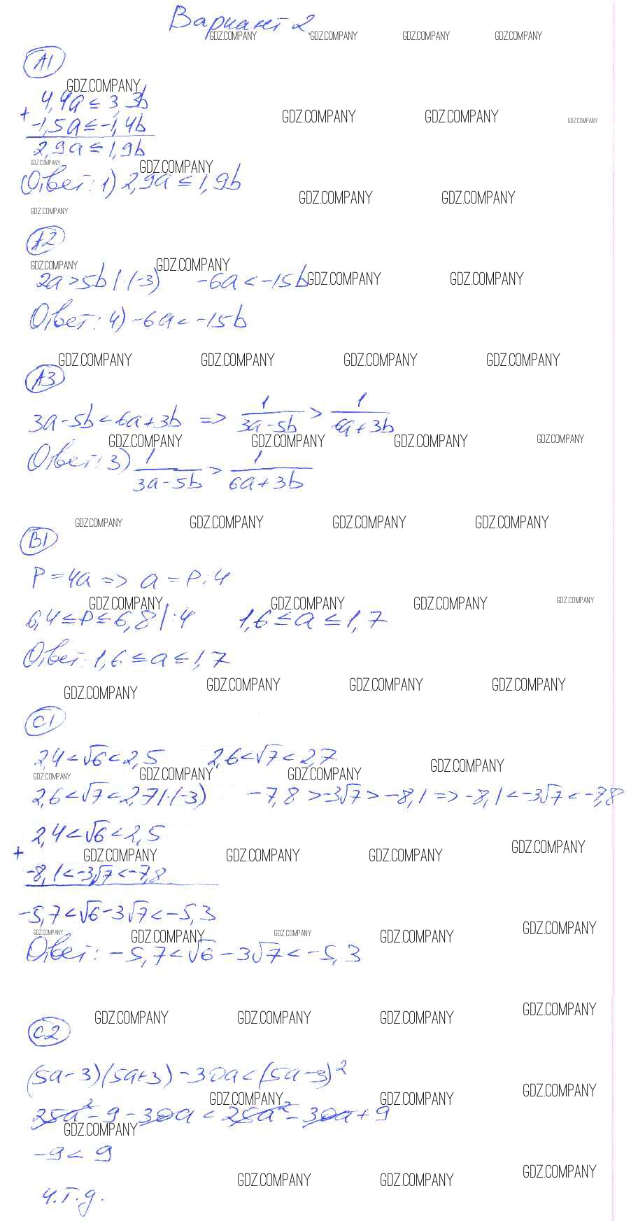 Здесь готовые ответы по Алгебре за 8 (восьмой) класс от Глазков, Гаиашвили Самостоятельные и контрольные работы УМК (издательство: Экзамен от 2012 г.) № 2