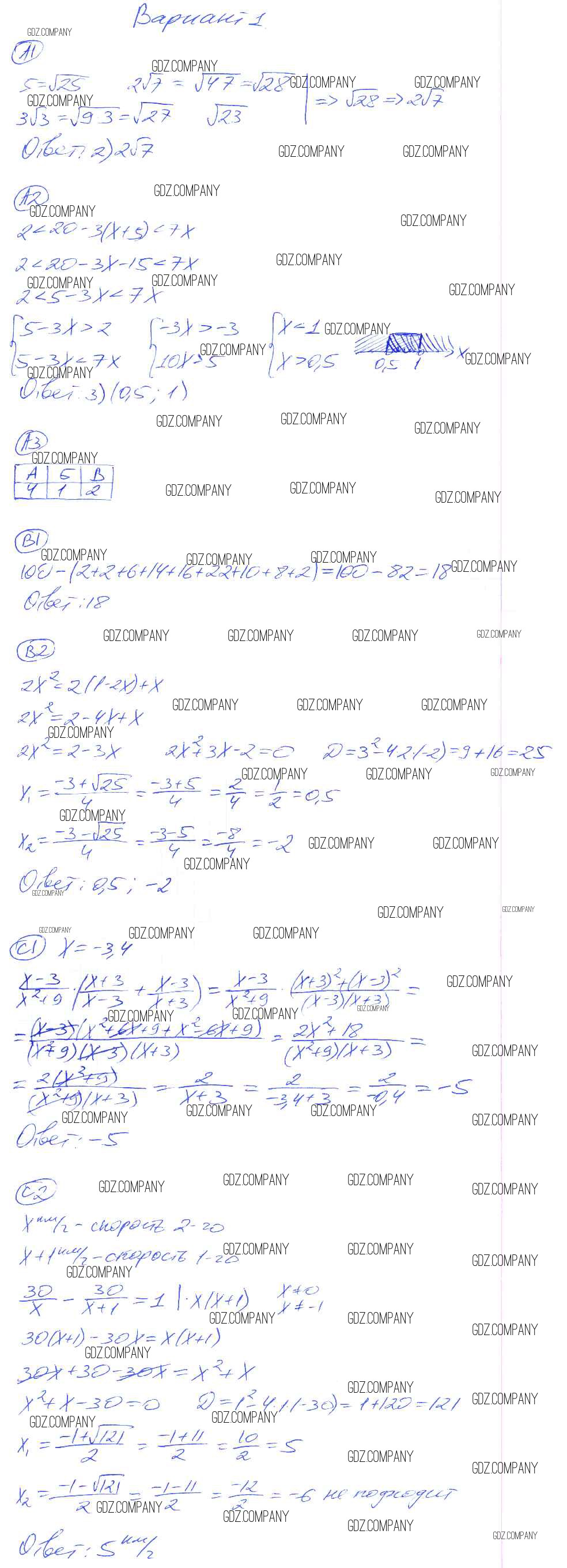 Здесь готовые ответы по Алгебре за 8 (восьмой) класс от Глазков, Гаиашвили Самостоятельные и контрольные работы УМК (издательство: Экзамен от 2012 г.) № 1