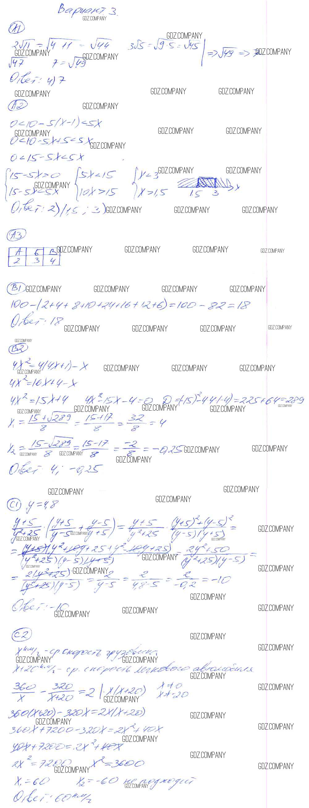 Здесь готовые ответы по Алгебре за 8 (восьмой) класс от Глазков, Гаиашвили Самостоятельные и контрольные работы УМК (издательство: Экзамен от 2012 г.) № 3