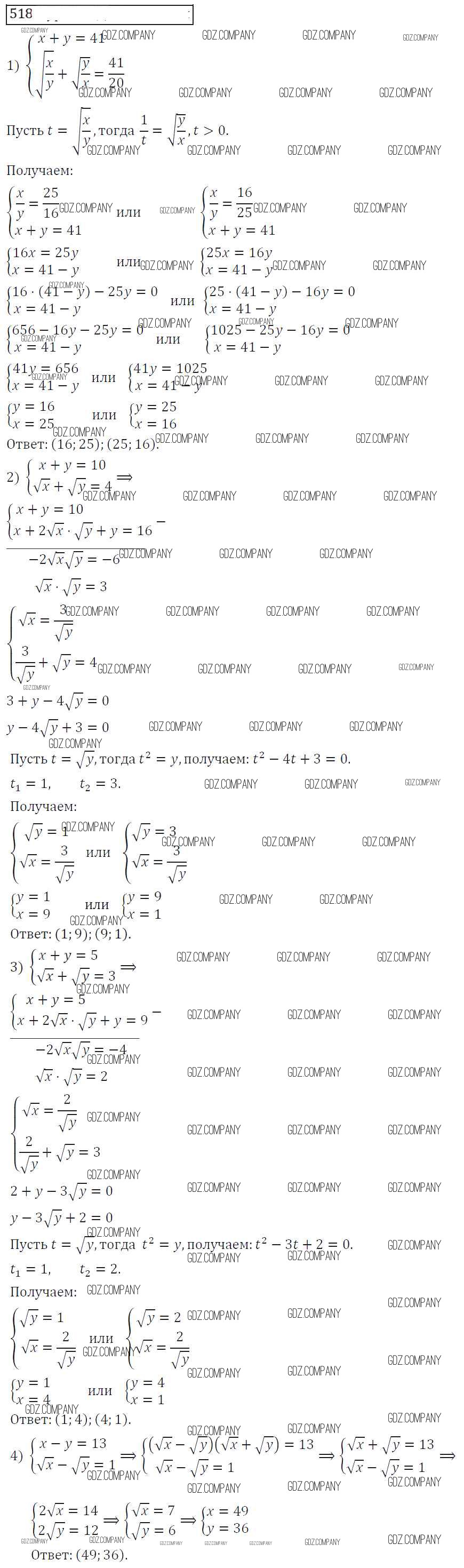 Здесь готовые ответы по Алгебре за 8 (восьмой) класс от Колягин, Ткачева, Федорова, Шабунин Учебник УМК (издательство: Просвещение от 2013 г.) № 518