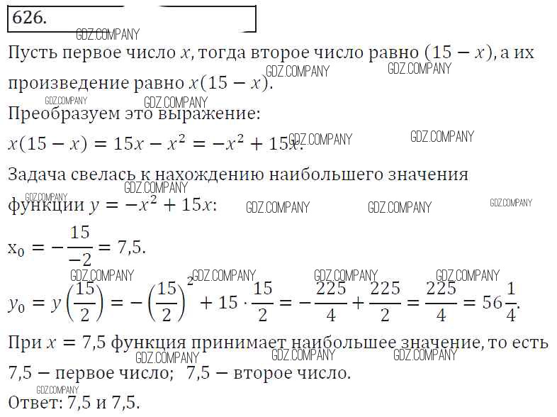 Здесь готовые ответы по Алгебре за 8 (восьмой) класс от Колягин, Ткачева, Федорова, Шабунин Учебник УМК (издательство: Просвещение от 2013 г.) № 626