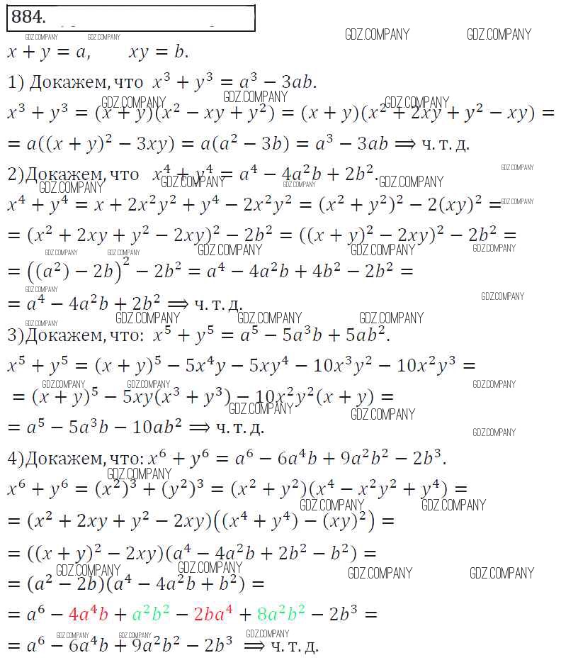 Здесь готовые ответы по Алгебре за 8 (восьмой) класс от Колягин, Ткачева, Федорова, Шабунин Учебник УМК (издательство: Просвещение от 2013 г.) № 884