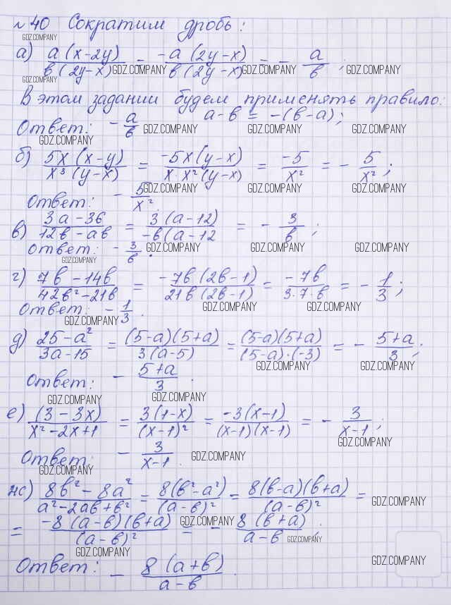 Здесь готовые ответы по Алгебре за 8 (восьмой) класс от Макарычев, Миндюк, Нешков, Суворова Учебник (издательство: Просвещение от 2016 г.) № 40