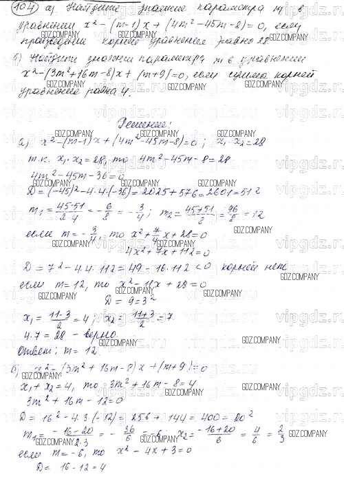 Здесь готовые ответы по Алгебре за 8 (восьмой) класс от Мордкович Задачник УМК Углубленный уровень (издательство: Мнемозина от 2016 г.) № 104 Углубленный уровень