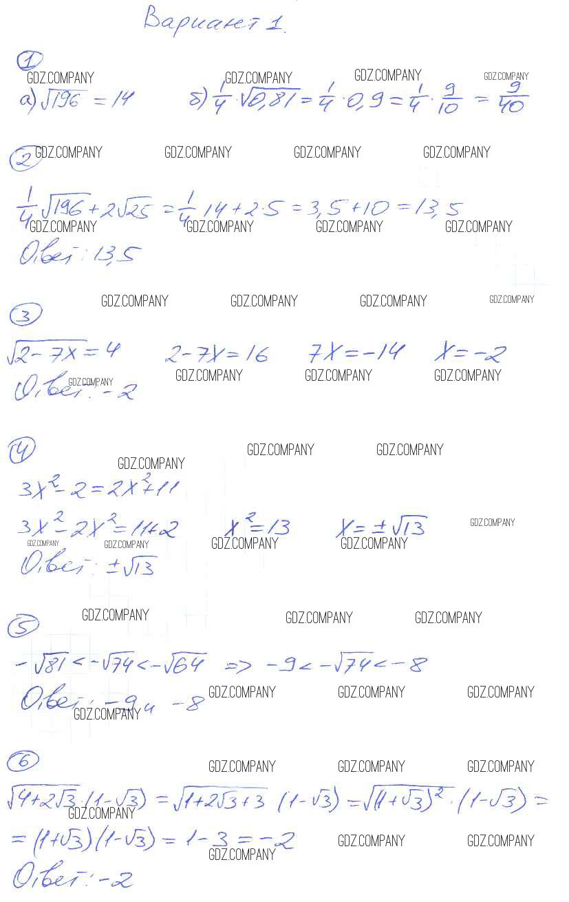 Здесь готовые ответы по Алгебре за 8 (восьмой) класс от Попов Дидактические материалы УМК (издательство: Экзамен от 2014 г.) № вариант-1