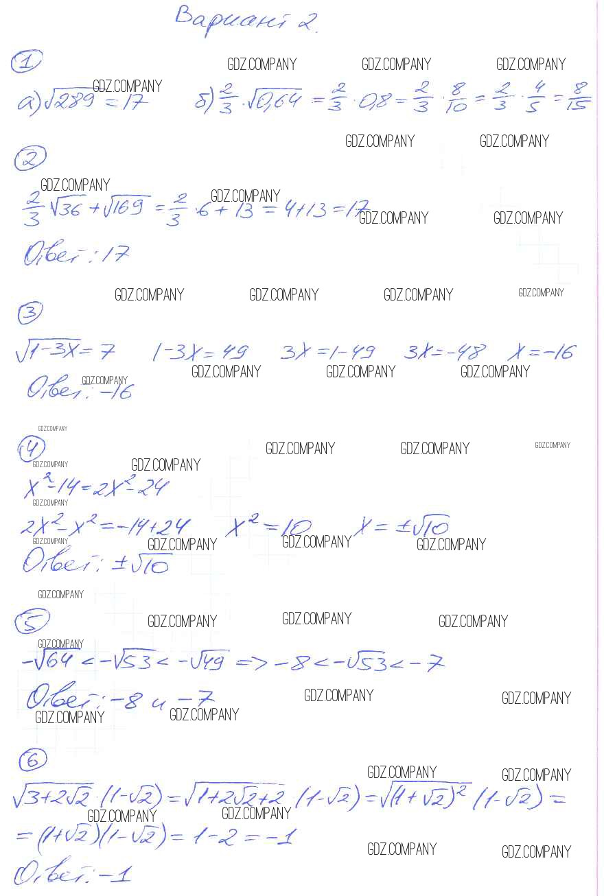 Здесь готовые ответы по Алгебре за 8 (восьмой) класс от Попов Дидактические материалы УМК (издательство: Экзамен от 2014 г.) № вариант-2