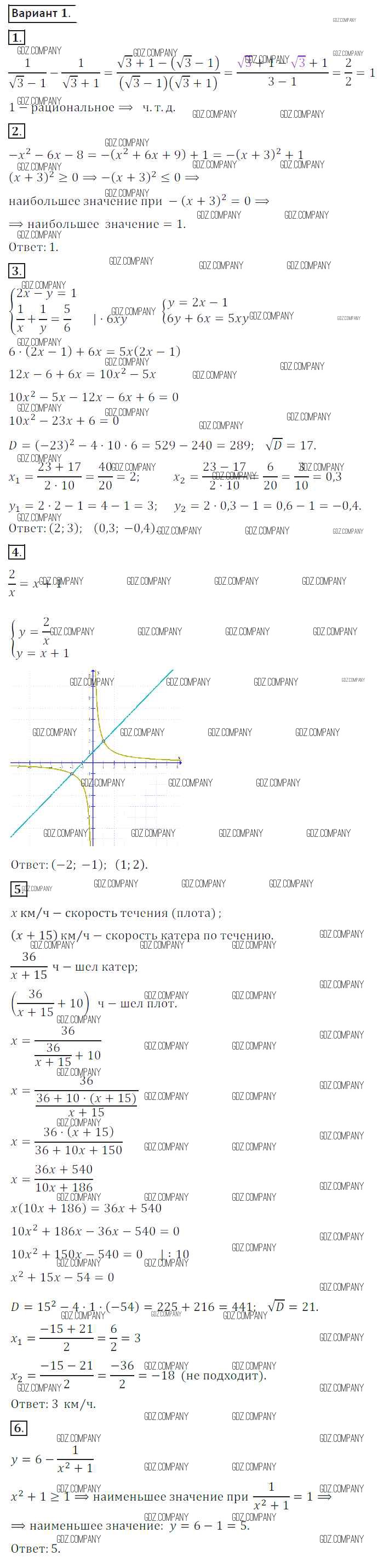 Здесь готовые ответы по Алгебре за 8 (восьмой) класс от Потапов, Шевкин Дидактические материалы МГУ - школе (издательство: Просвещение от 2017 г.) № вариант 1