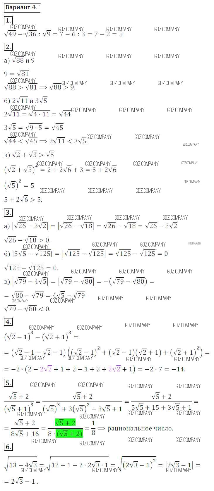 Здесь готовые ответы по Алгебре за 8 (восьмой) класс от Потапов, Шевкин Дидактические материалы МГУ - школе (издательство: Просвещение от 2017 г.) № вариант 4
