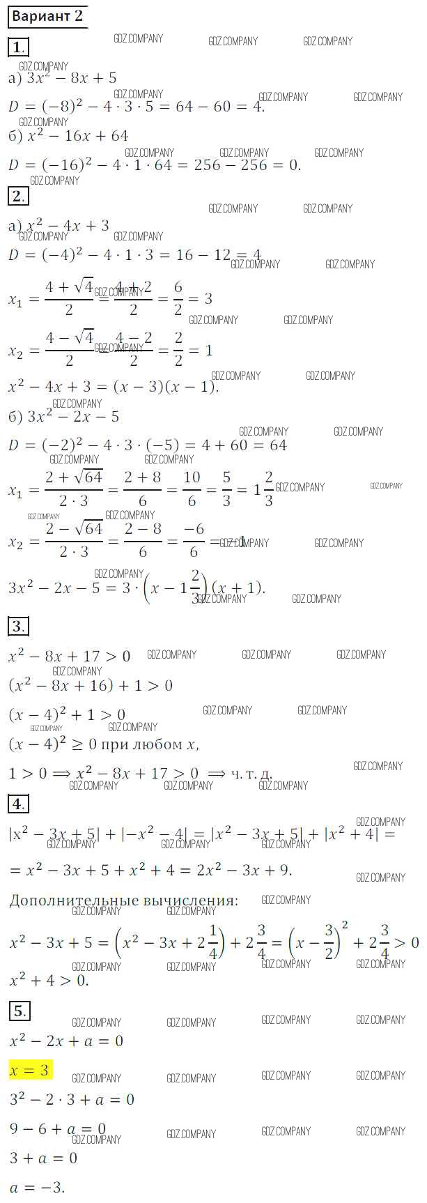 Здесь готовые ответы по Алгебре за 8 (восьмой) класс от Потапов, Шевкин Дидактические материалы МГУ - школе (издательство: Просвещение от 2017 г.) № вариант 2