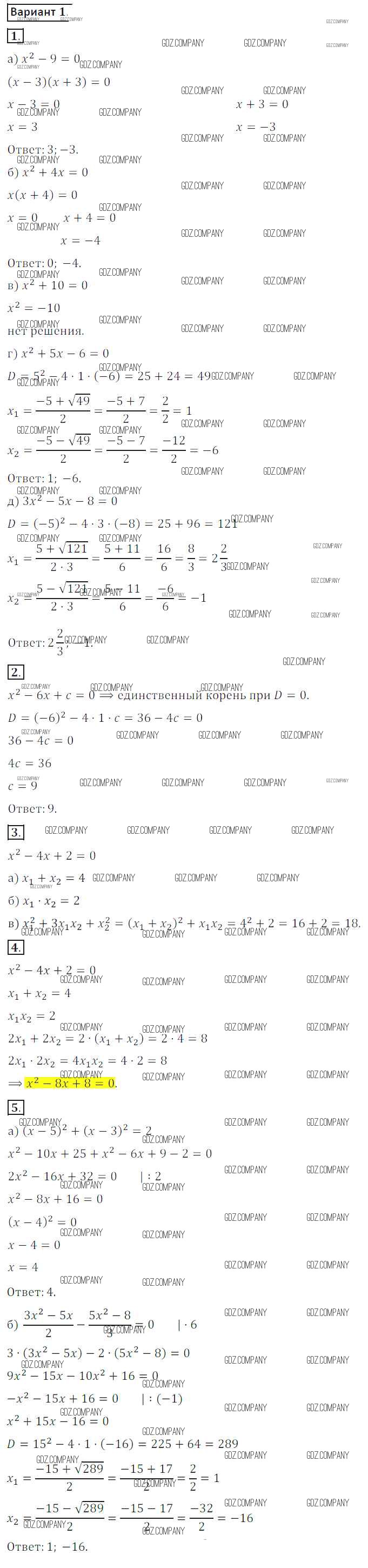Здесь готовые ответы по Алгебре за 8 (восьмой) класс от Потапов, Шевкин Дидактические материалы МГУ - школе (издательство: Просвещение от 2017 г.) № вариант 1