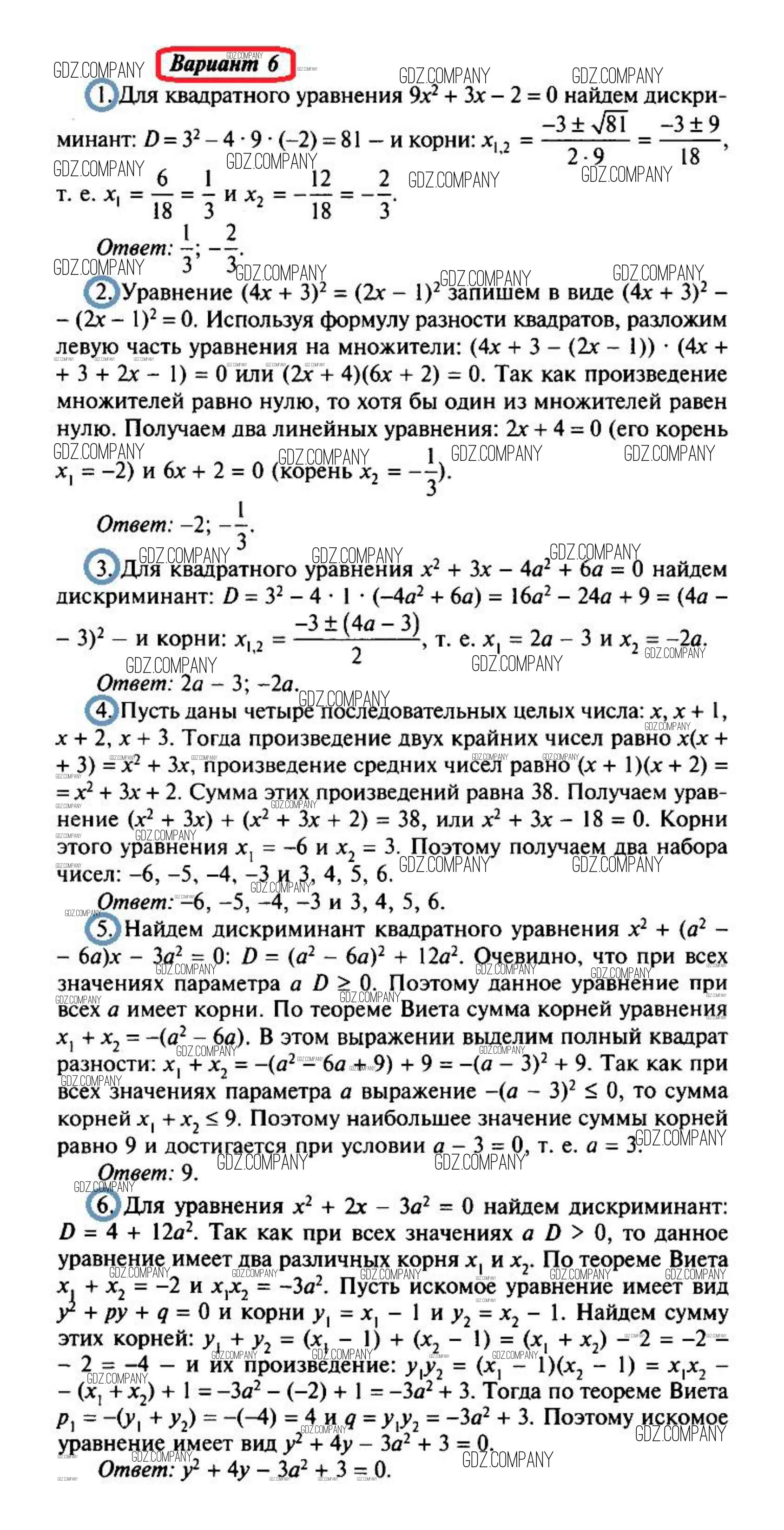 глава 3. квадратные уравнения (контрольные работы) / Квадратные уравнения (вариант) / 6