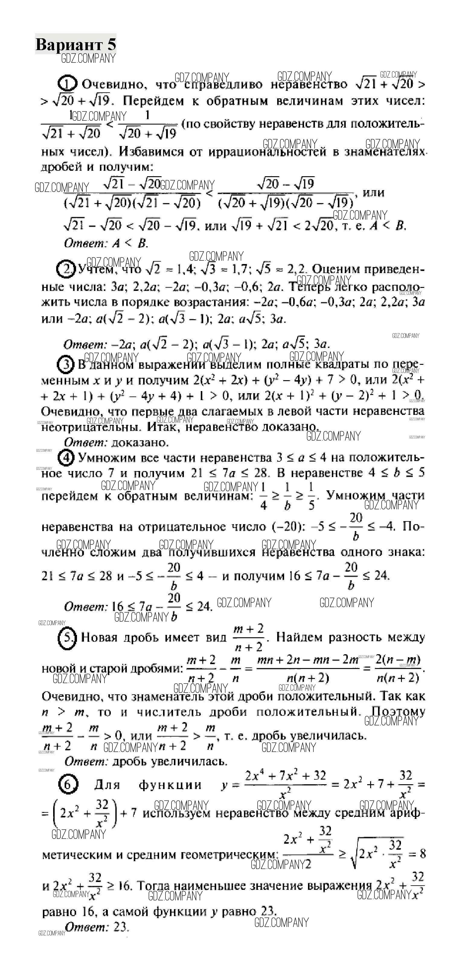 глава 4. неравенства (контрольные работы) / Числовые неравенства и их свойства (вариант) / 5