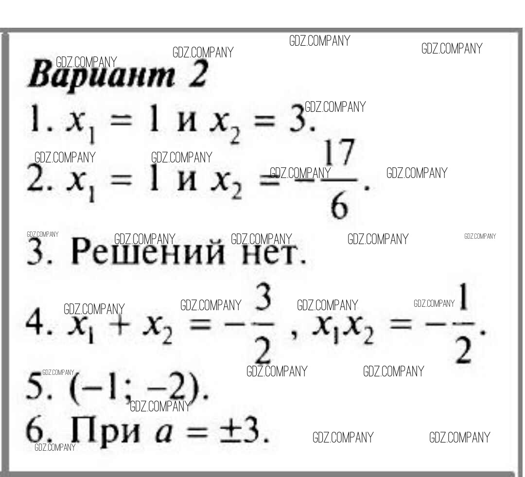 глава 3. квадратные уравнения (контрольные работы) / Квадратные уравнения. Дробные рациональные уравнения (вариант) / 2