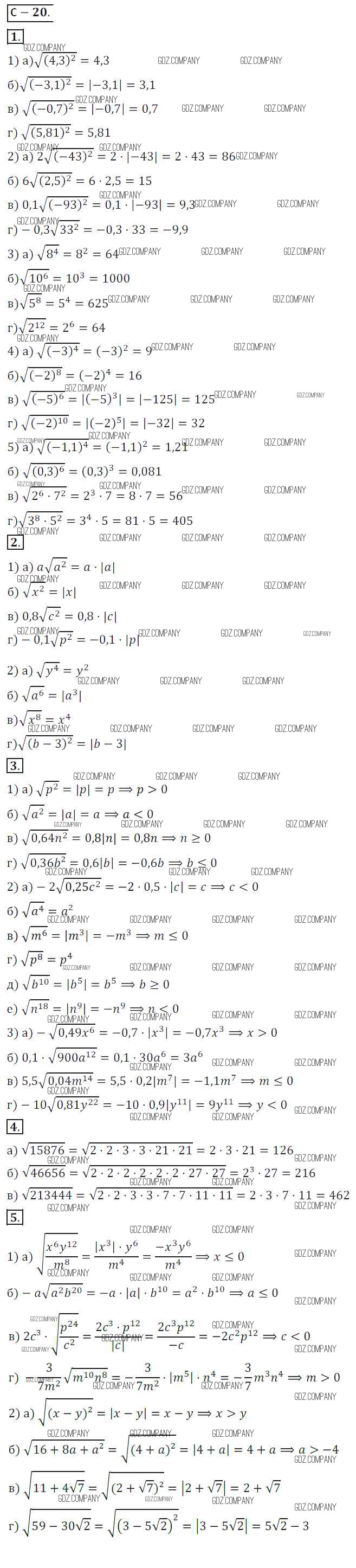 Здесь готовые ответы по Алгебре за 8 (восьмой) класс от Жохов, Макарычев, Миндюк Дидактические материалы (издательство: Просвещение от 2014 г.) № СР №20