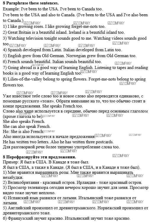 Здесь готовые ответы по Английскому языку за 8 (восьмой) класс от Афанасьева, Михеева Учебник Новый курс (издательство: Дрофа от 2017 г.) № 8