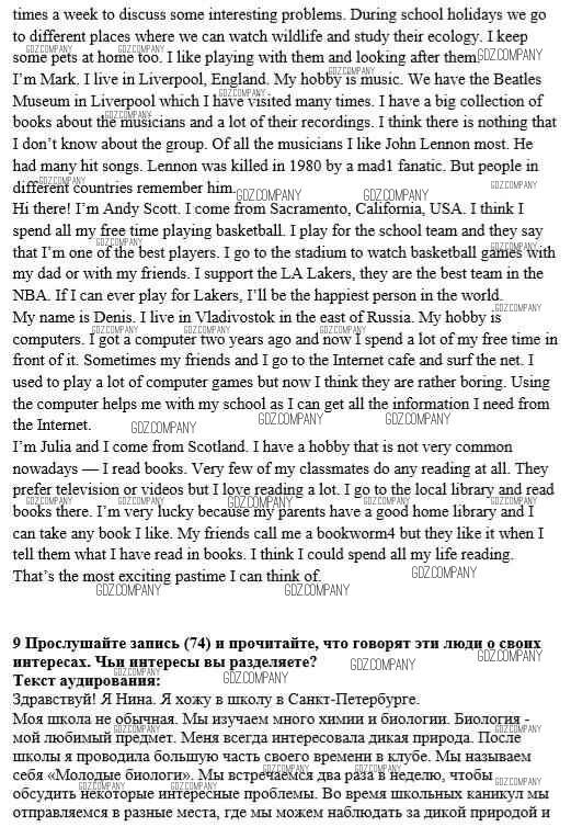 Здесь готовые ответы по Английскому языку за 8 (восьмой) класс от Афанасьева, Михеева Учебник Новый курс (издательство: Дрофа от 2017 г.) № 9