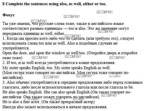 Здесь готовые ответы по Английскому языку за 8 (восьмой) класс от Афанасьева, Михеева Учебник Новый курс (издательство: Дрофа от 2017 г.) № 8