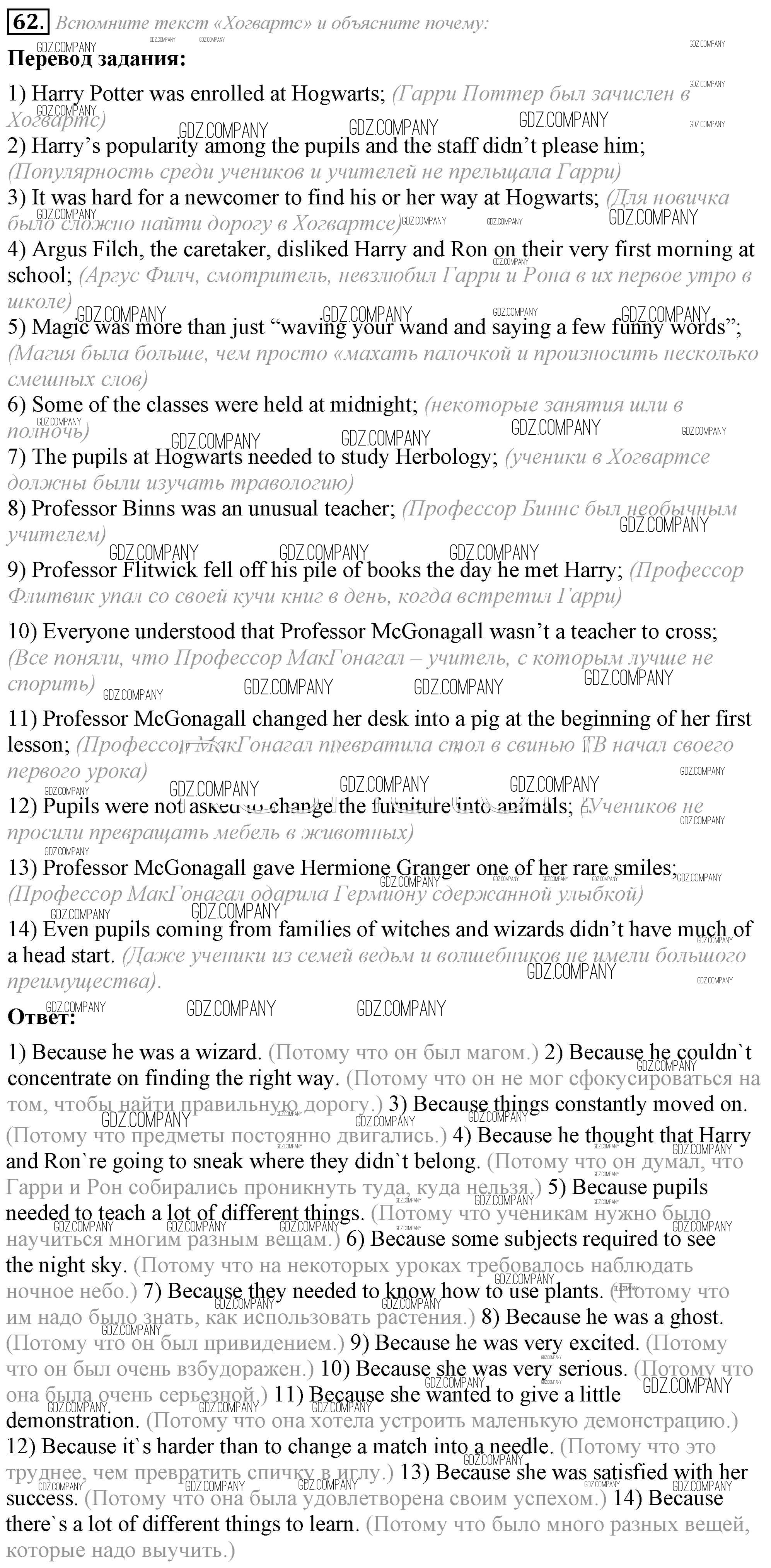 Здесь готовые ответы по Английскому языку за 8 (восьмой) класс от Афанасьева, Михеева Учебник Углубленный уровень (издательство: Просвещение от 2014 г.) № 62 Углубленный уровень