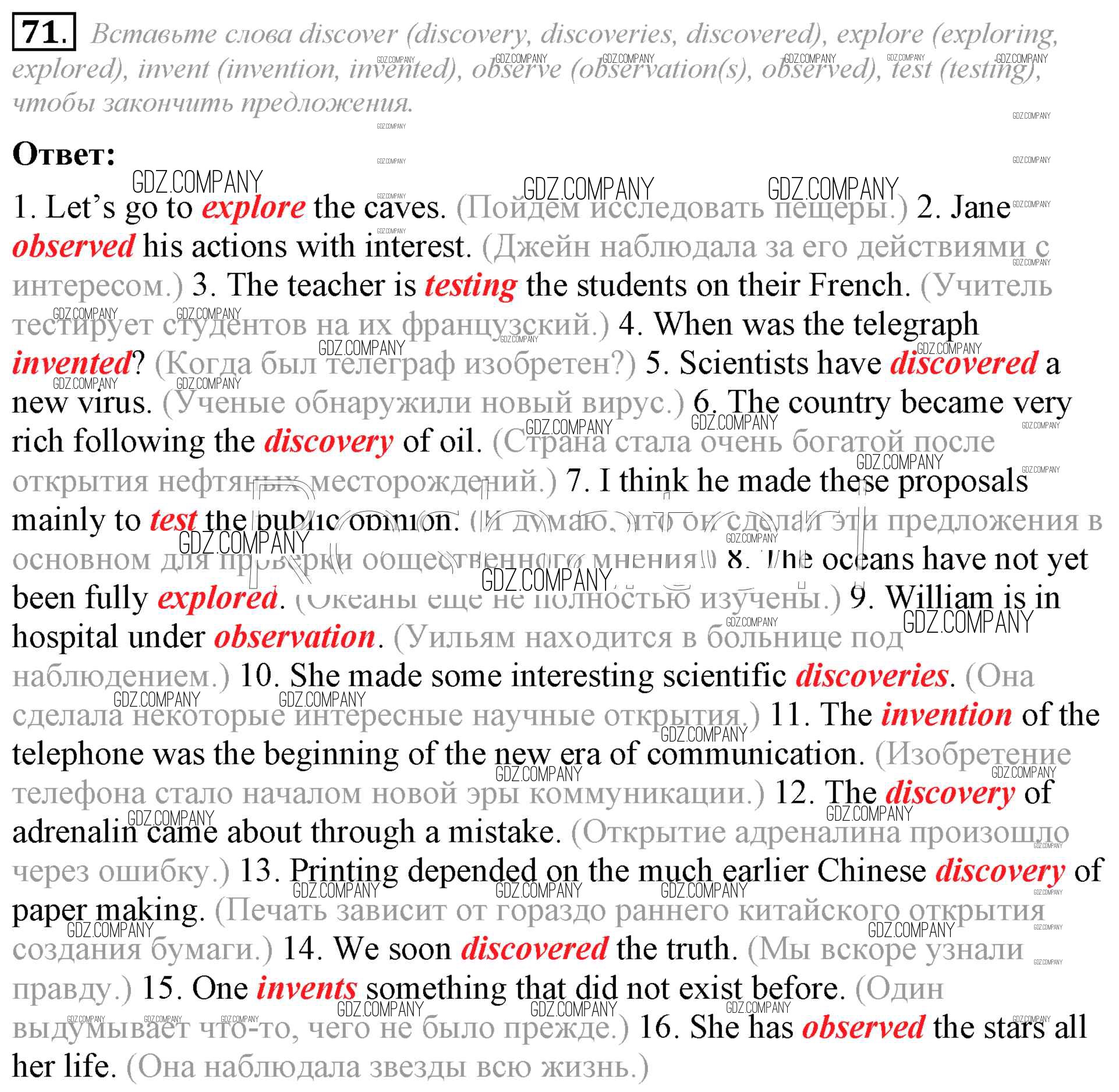 Здесь готовые ответы по Английскому языку за 8 (восьмой) класс от Афанасьева, Михеева Учебник Углубленный уровень (издательство: Просвещение от 2014 г.) № 71 Углубленный уровень