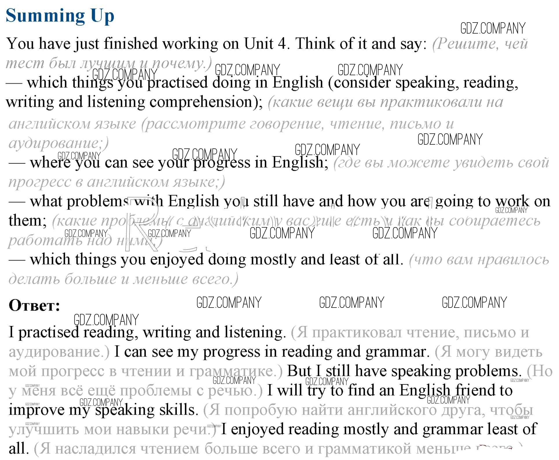 Здесь готовые ответы по Английскому языку за 8 (восьмой) класс от Афанасьева, Михеева Учебник Углубленный уровень (издательство: Просвещение от 2014 г.) № Summing Up Углубленный уровень