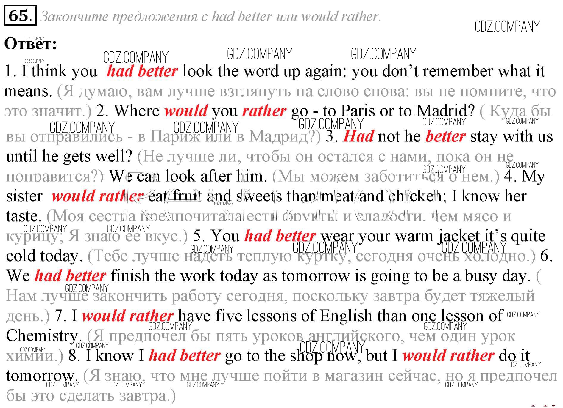 Здесь готовые ответы по Английскому языку за 8 (восьмой) класс от Афанасьева, Михеева Учебник Углубленный уровень (издательство: Просвещение от 2014 г.) № 65 Углубленный уровень