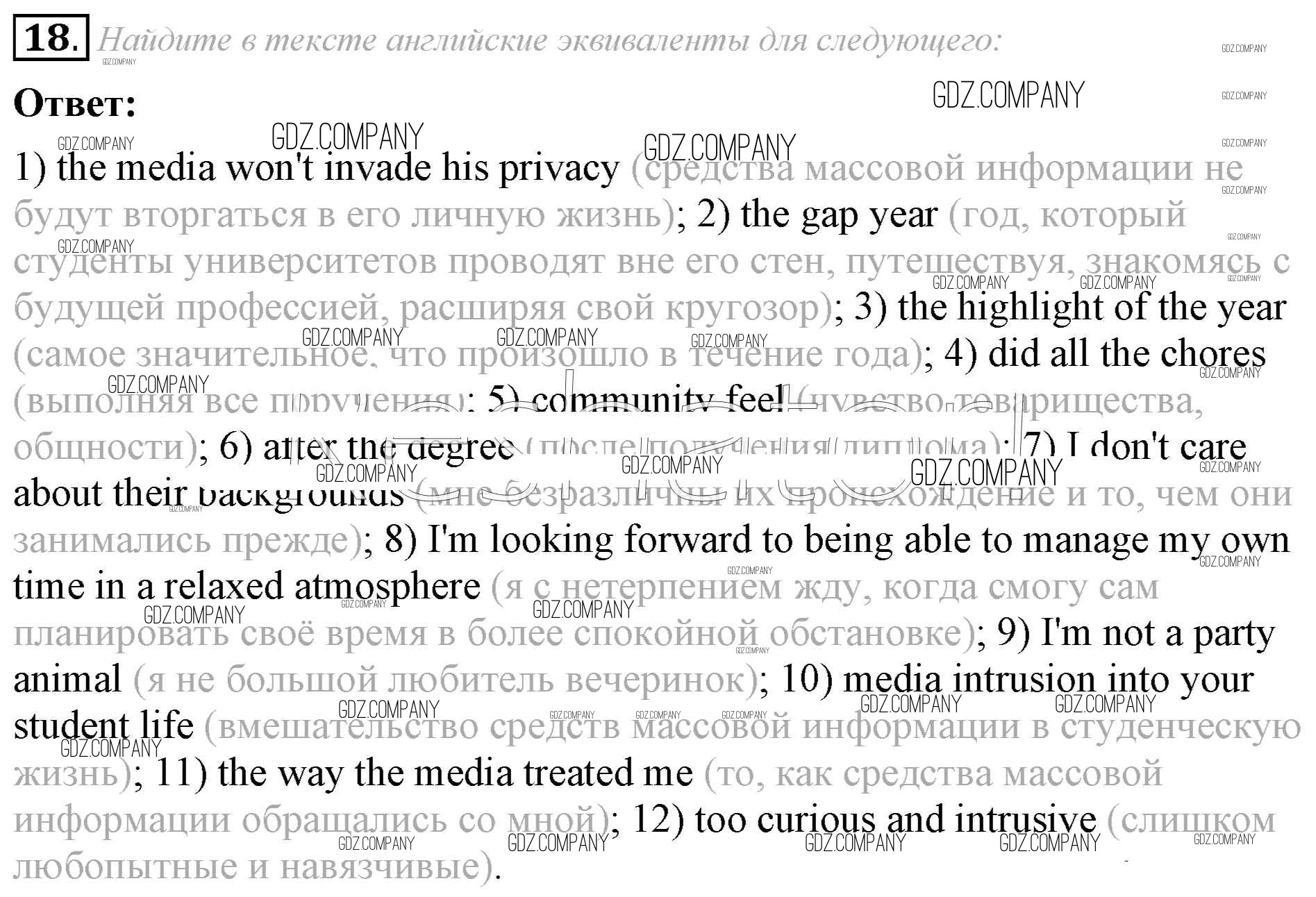 Здесь готовые ответы по Английскому языку за 8 (восьмой) класс от Афанасьева, Михеева Учебник Углубленный уровень (издательство: Просвещение от 2014 г.) № 18 Углубленный уровень