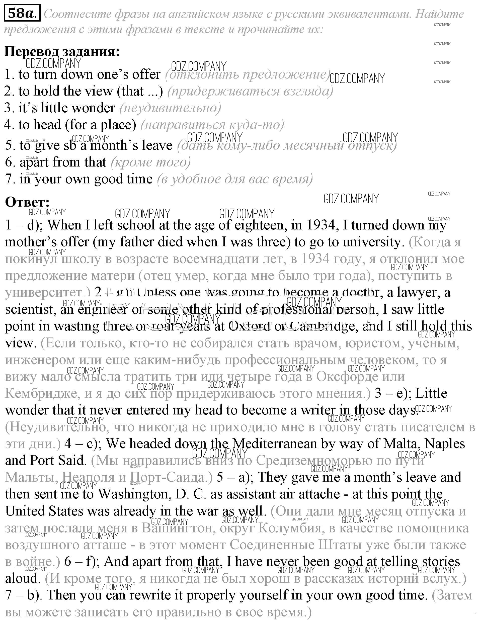Здесь готовые ответы по Английскому языку за 8 (восьмой) класс от Афанасьева, Михеева Учебник Углубленный уровень (издательство: Просвещение от 2014 г.) № 58a Углубленный уровень