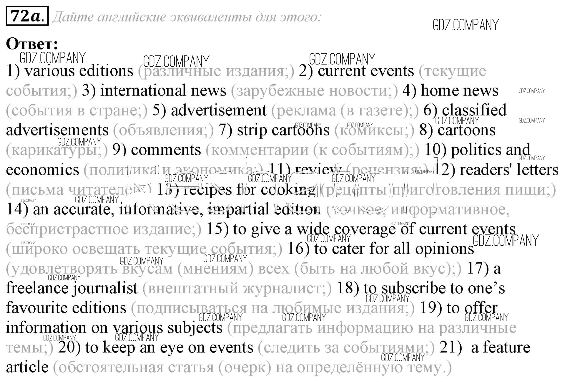 Здесь готовые ответы по Английскому языку за 8 (восьмой) класс от Афанасьева, Михеева Учебник Углубленный уровень (издательство: Просвещение от 2014 г.) № 72a Углубленный уровень