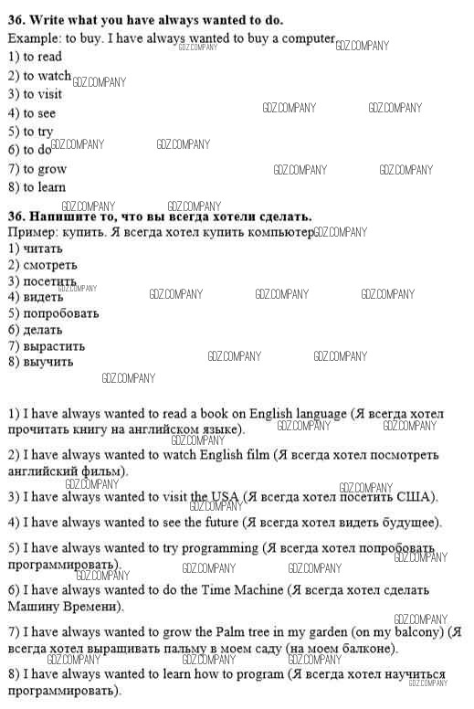 Здесь готовые ответы по Английскому языку за 8 (восьмой) класс от Афанасьева, Михеева Рабочая тетрадь Новый курс (издательство: Дрофа от 2017 г.) № 36